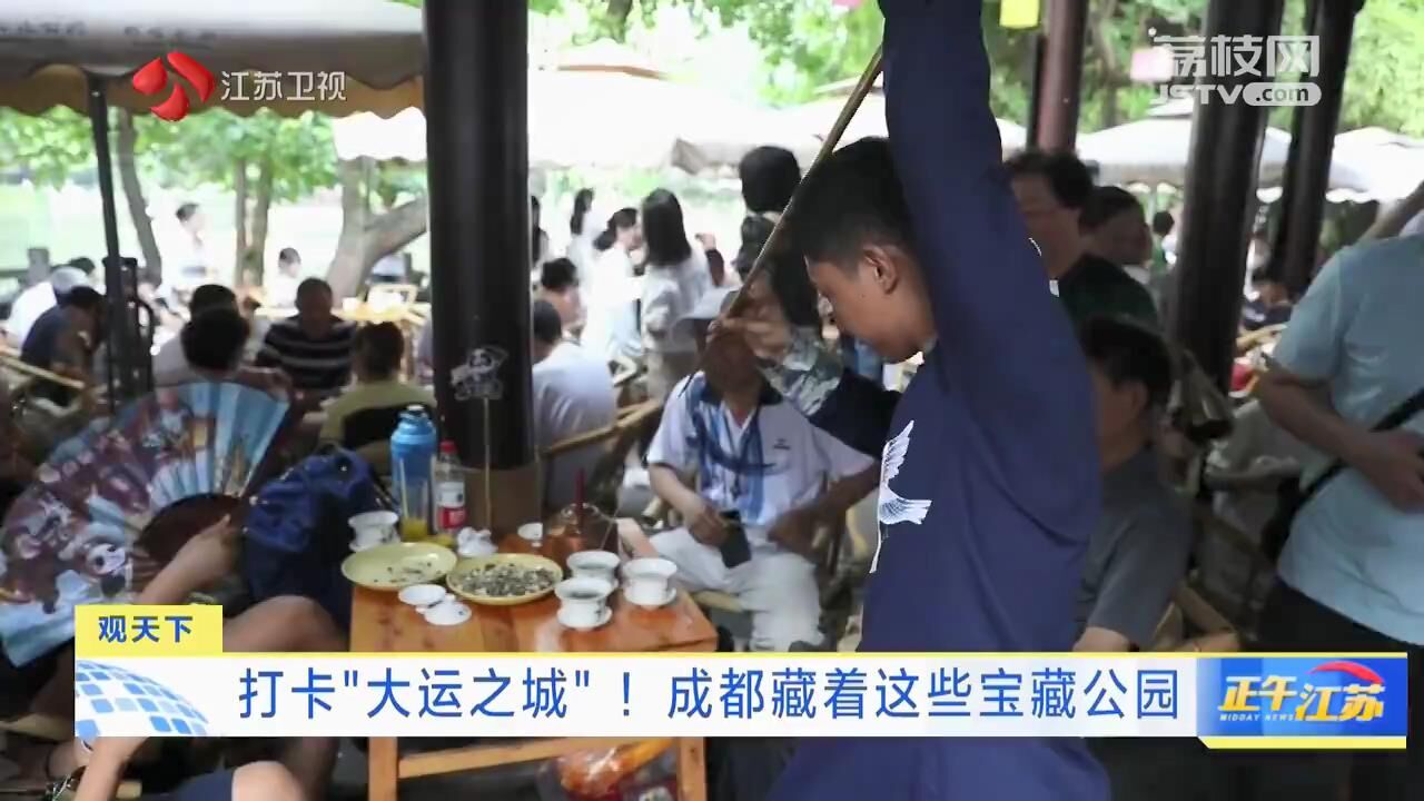 江苏台记者黎明报道:“人民公园,可以说是成都最著名的公园了,它已经有一百多年的历史了,一代又一代的成都人在这里喝茶、谈趣、遛鸟、散步,它是老成都生活的缩影,也是城市发展的见证。今天我来到这里,不仅仅是打卡,还要完成一个特别的任务。”