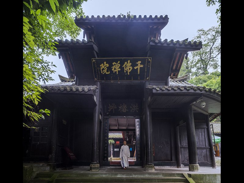 洪椿坪,始建于明朝,称千佛庵;清时重修,因寺前有三棵洪椿古树而得名。传为宝掌和尚结茅处。分为观音殿、大雄宝殿和普贤殿,殿后供有达摩祖师象。洪椿坪内珍贵文物数不胜数。一是楹联众多,且品位较高;二是寺内藏有清制千佛莲灯,雕镂精美;三是寺内存有清朝乾隆年间的木制“正明司碑”,具有很高的史料价值。