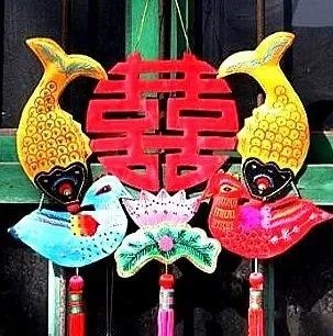 陪嫁绣品中的门帘是在姑娘嫁到婆家后,由送亲的娘家人亲手挂在姑娘的新房门上,门帘上方的坠物多为绣制的生肖动物、绣球等,加上大红的底色,给人“开门红”的视觉冲击。