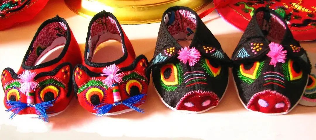 小孩绣品主要有小儿帽圈、虎头帽、虎头鞋、虎枕、裹肚、马甲等。用象征“生殖崇拜”的金瓜打扮绣制的小儿帽圈,寓意多生多育、生命不息。威风凛凛的虎头帽圈辟邪保平安,肥头肥脑的猪头帽圈寓意小儿多吃多睡、健康成长。憨态可掬、威风可爱的小儿绣花虎枕、虎头鞋、猪头鞋、“五毒”和“八卦”汇聚在一起的“五毒”马甲等,在实用保暖的同时,更有辟邪护佑、呵护小儿成长之意。小儿绣花裹肚作为艺术品外,还具有温暖肚脐的功能。