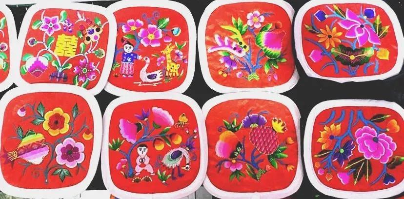 千阳刺绣的品种丰富,有刺绣耳枕、刺绣陪嫁物、刺绣壁挂、小孩绣品等。