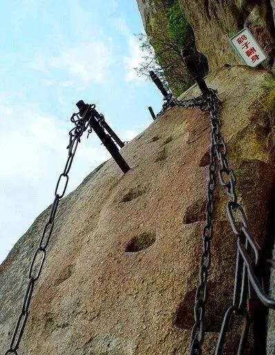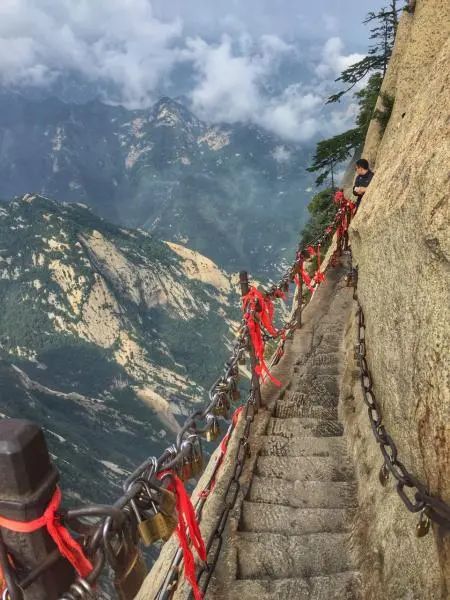 第一险长空栈道,位于华山极顶南峰东侧南天门外的山腰间,万仞绝壁之上,通过镶嵌石钉、搭建木椽而成。全长约百余米,是华山的险中之首。长空栈道,是华山险中之首。