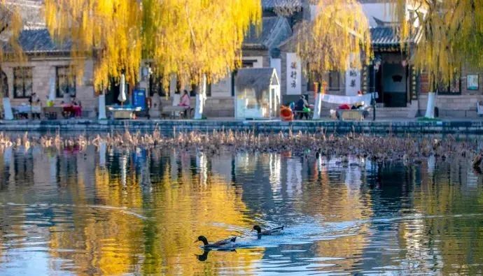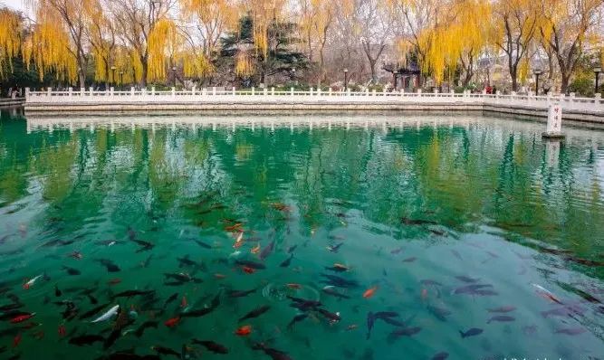 冬日的五龙潭公园安静祥和,阳光灿烂,风景优美。这里泉面阔大、亭台廊阁布局精巧,潭面上飘着热气,鱼儿在水中自由地游着,公园内近三十处名泉紧促相拥,不妨在此感受下这份由古至今的汨汨流淌。从五龙潭东门出,向北步行约600米便可到达大明湖景区。