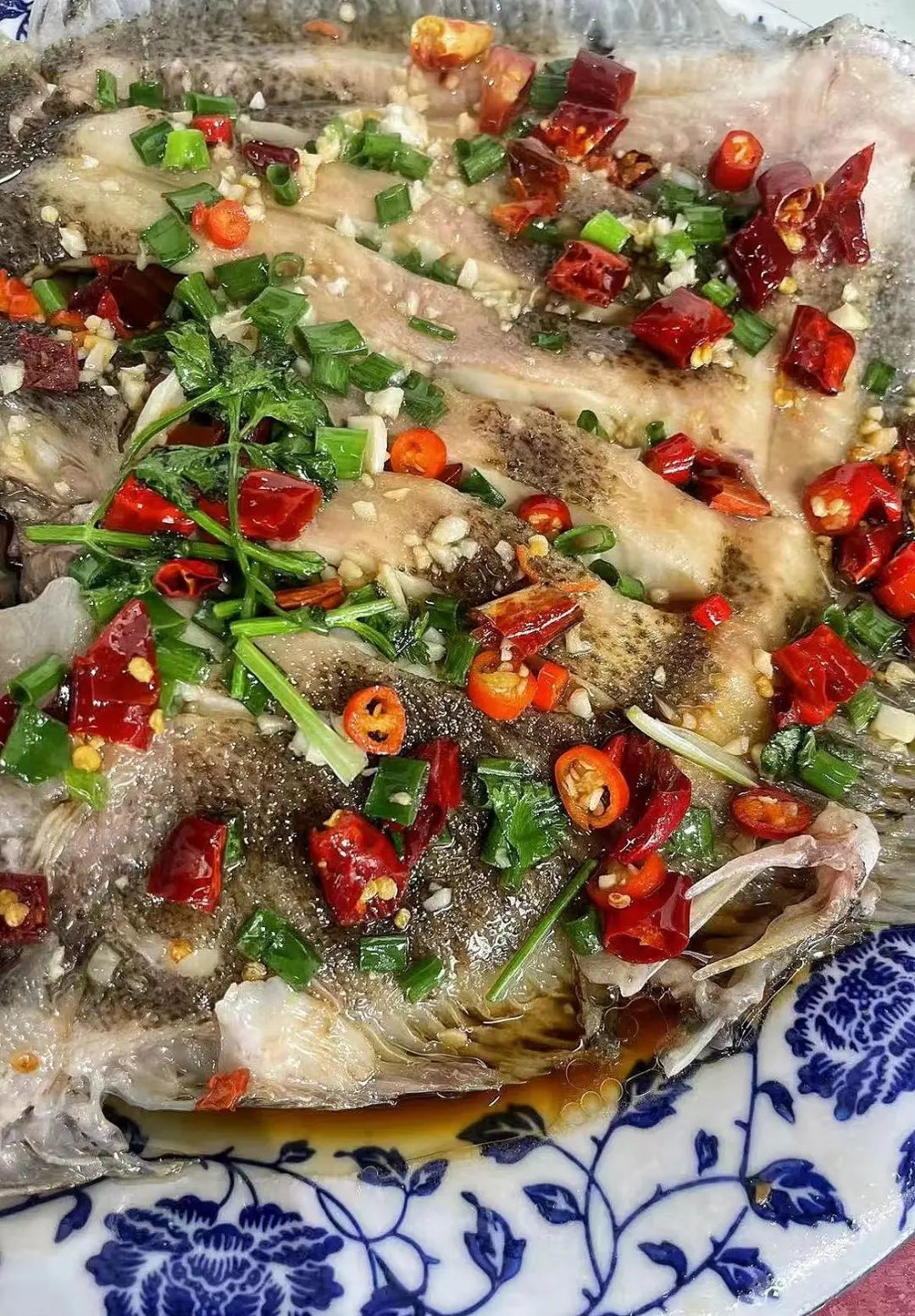 清蒸加吉鱼更是“烟台之光”,鱼肉鲜嫩细腻,清蒸时加上本地葱段,趁热吃更绝。
