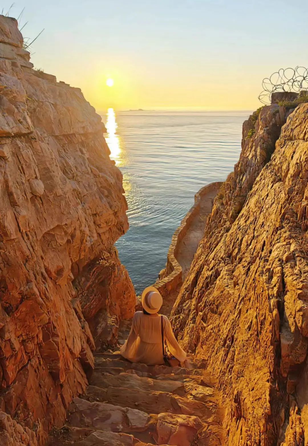 傍晚去山顶看日落,美得不像话。在岛上还可以赶海、潜水,人少景美,从蓬莱蓬长客港坐船,4小时就可抵达。