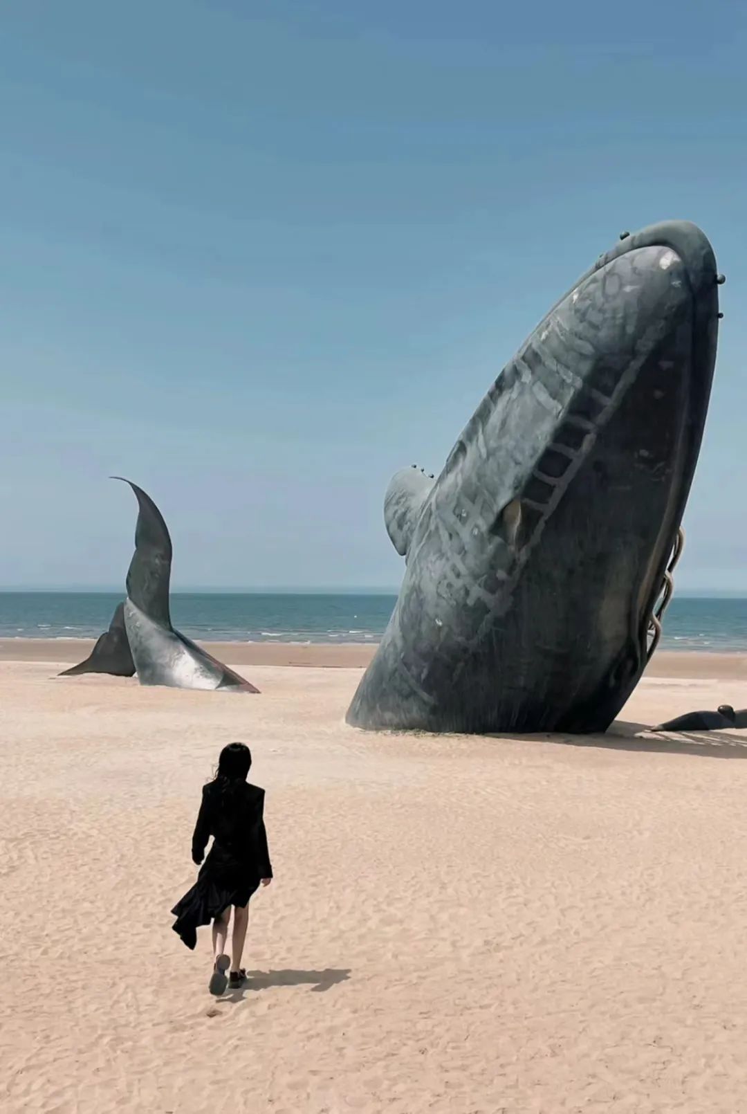 “孤独的鲸”应该是烟台市区最出片的地方了,沿着海边一直走就能看到超级灵动的巨型鲸鱼。