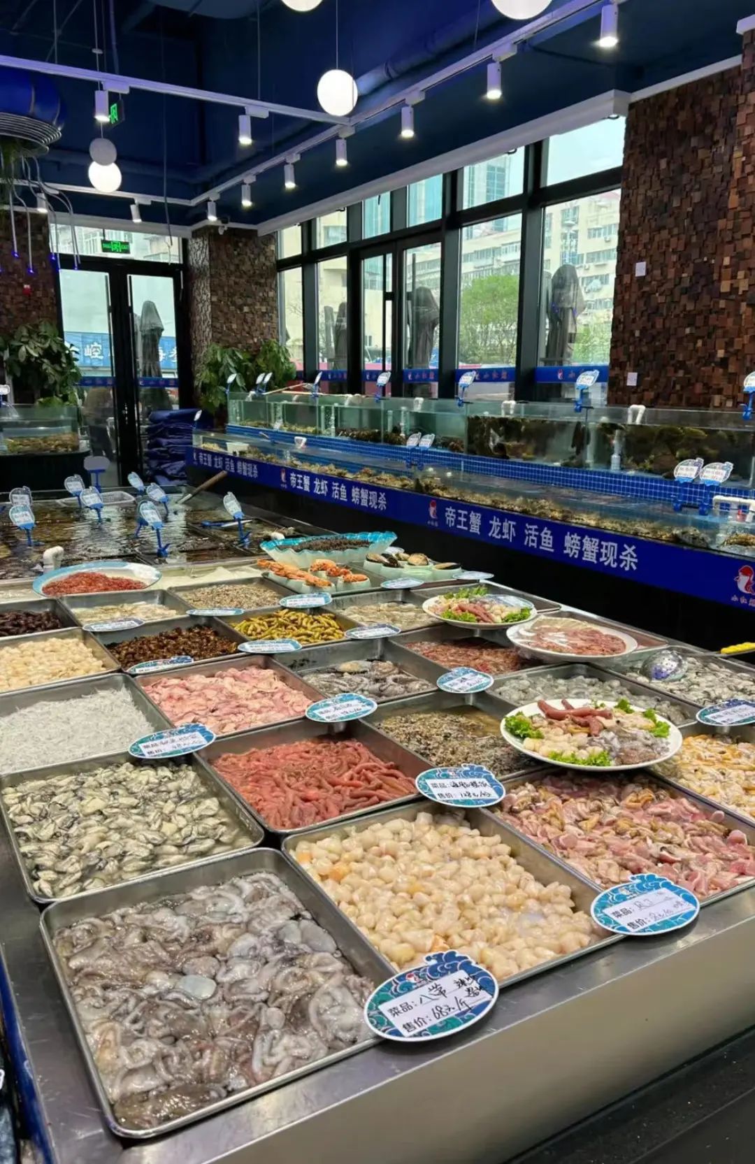 和小红鲸旗鼓相当,也是一家老海鲜店了,海鲜一样是现挑的、他家的炸蛎黄、葱油天鹅蛋、鸟贝几乎是桌桌必点,口味很独特,火了10多年都难以超越。