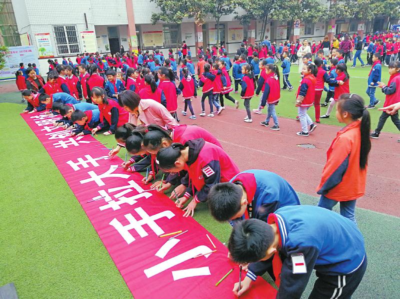 自贡市青少年广泛开展“小手拉大手共创文明城”活动。