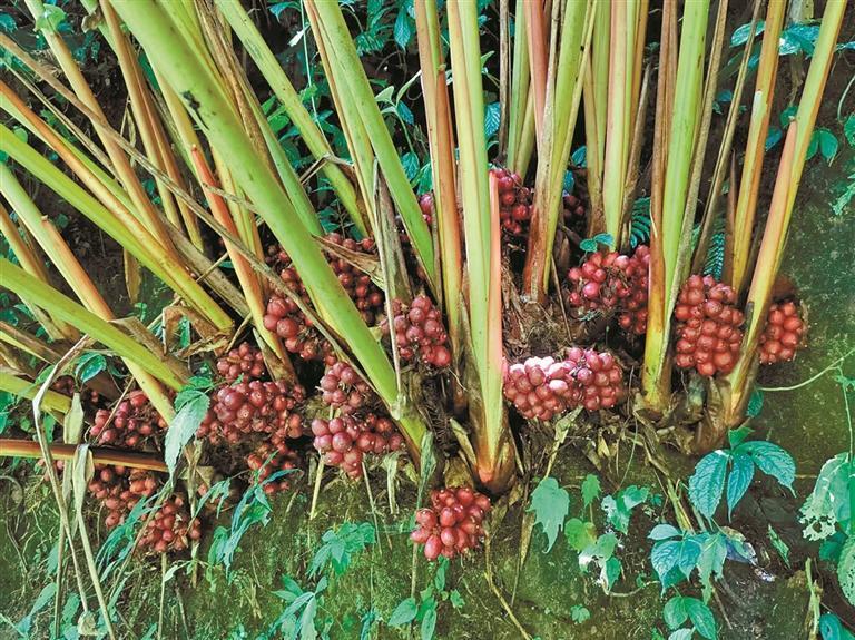 金秋十月,走进盈江县盏西镇,只见在葱郁茂盛的树木掩映之下,一颗颗饱满的草果果实犹如璀璨的宝石,满载着丰收的喜悦与自然的馈赠。