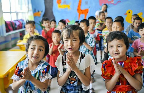 新疆若羌县吾塔木乡双语幼儿园的孩子们在上课(2012年6月9日摄)。新华社记者 江文耀 摄