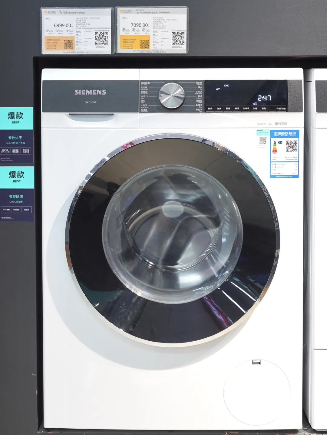 右边这款是西门子的经典款。家电普遍白色款都要比深色款贵一些,如果是想买白色款家电的朋友,可以来看看实物,这款白色的色调很妙,白得不突兀、很高级。