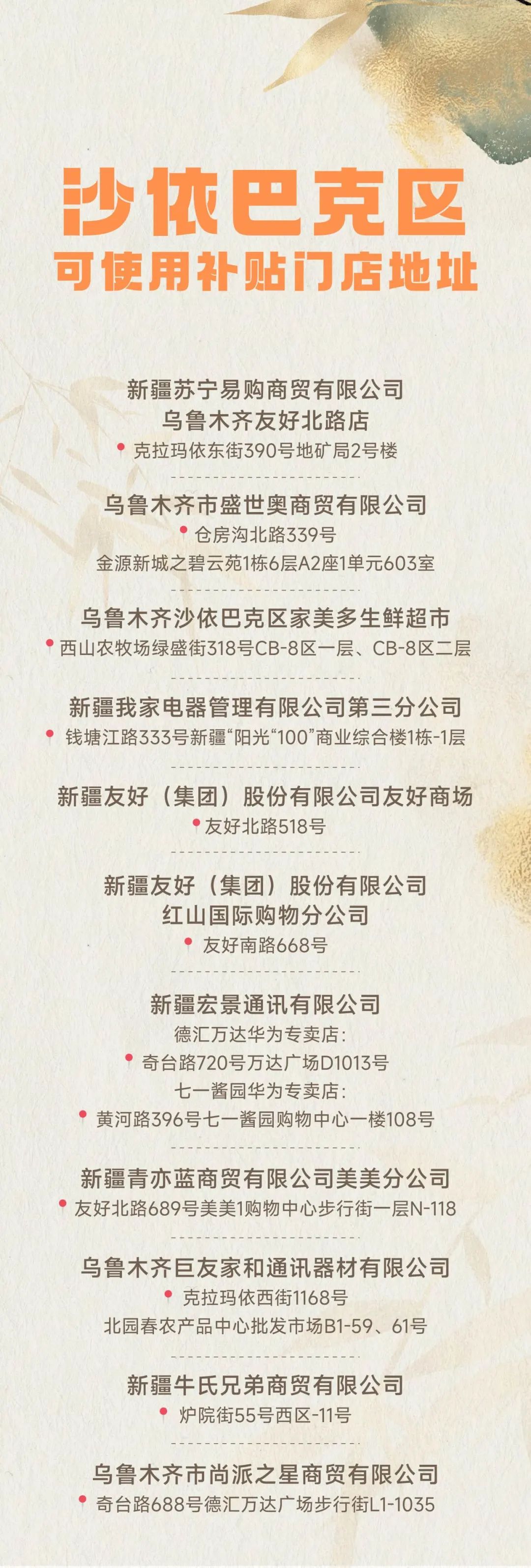 Q :自治区补贴返还的优惠券都有多少?可以在哪里用?
