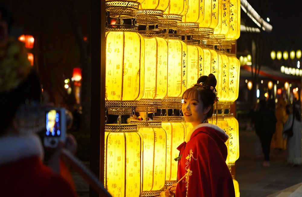 游客在洛阳市洛邑古城内游玩 图片来源:新华社