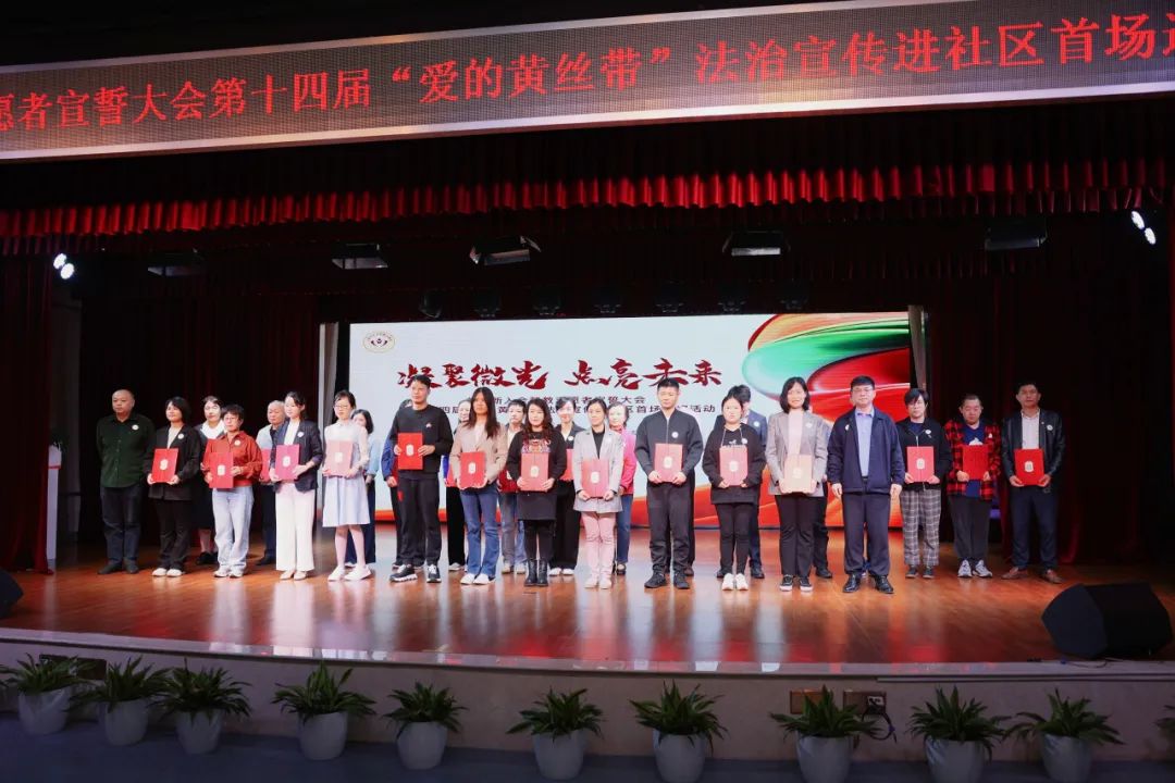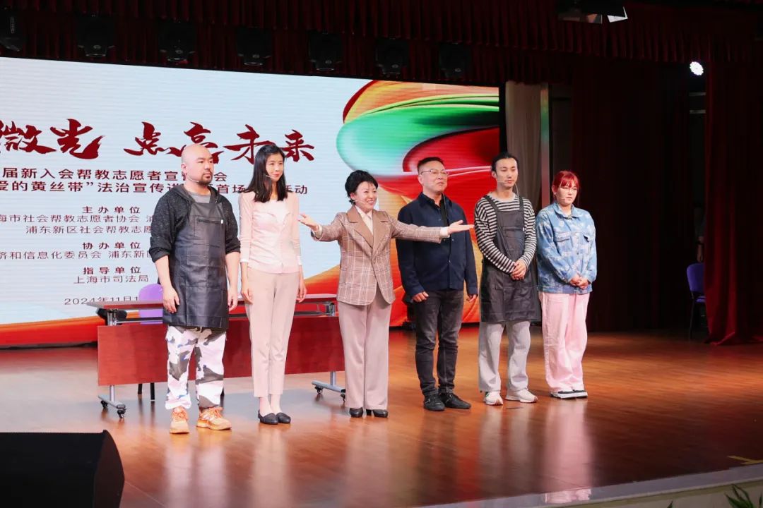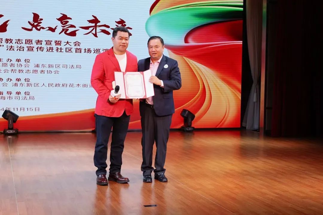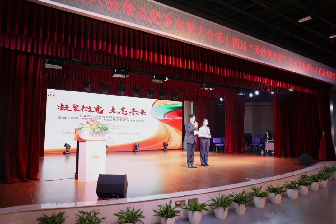 11月15日下午,市社会帮教志愿者协会与浦东新区司法局、浦东新区社会帮教志愿者协会在浦东新区花木社区文化活动中心5楼举办首届新入会帮教志愿者宣誓大会和第十四届“爱的黄丝带”法治宣传进社区首场巡演活动。