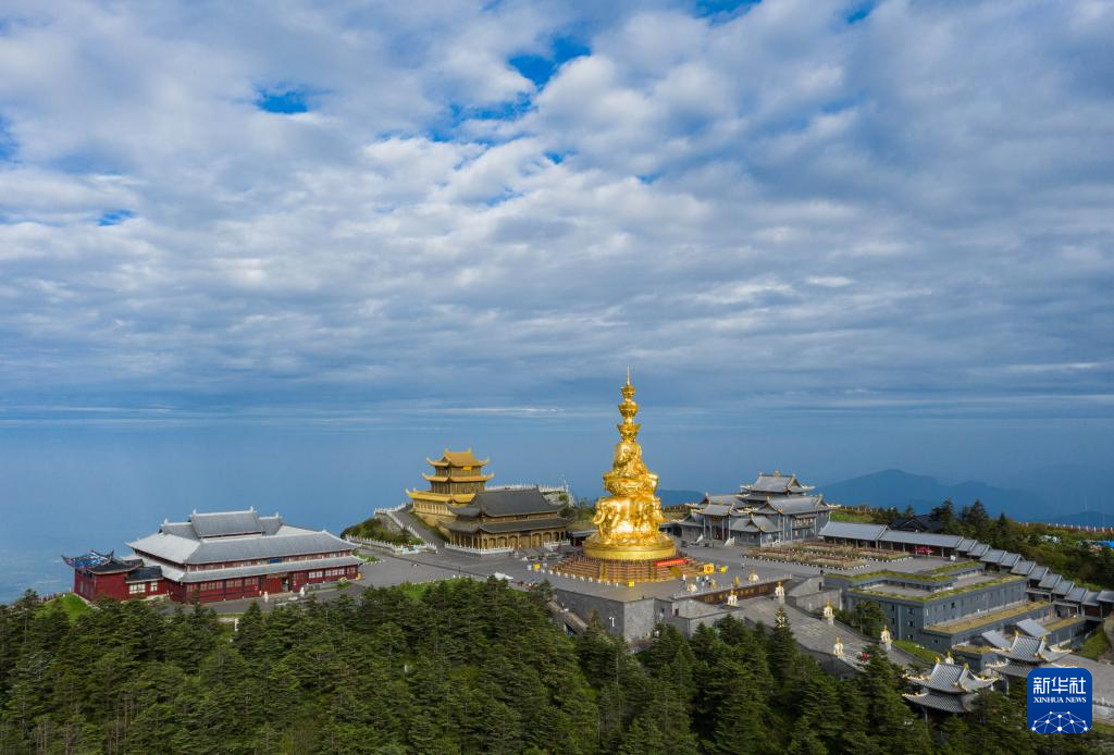 峨眉山景区金顶和万佛顶(6月6日摄,无人机照片)。