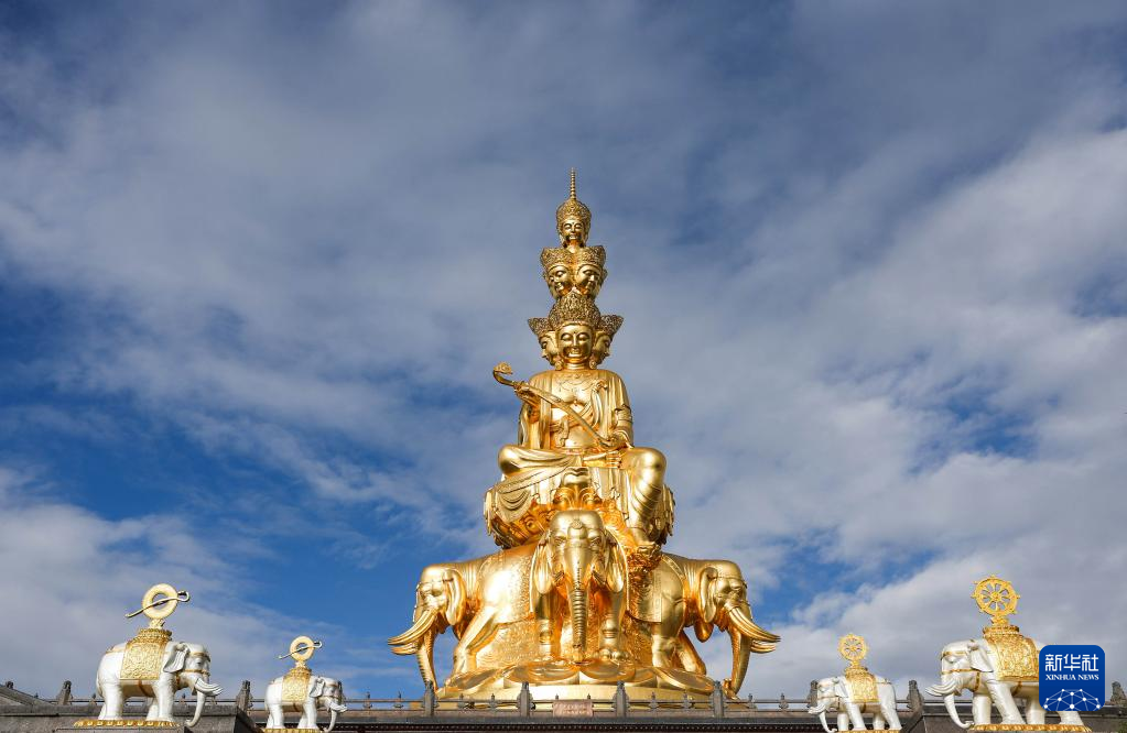 峨眉山景区金顶的四面十方普贤坐像(6月5日摄)。