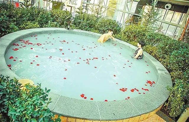 为了给游客一个更好的体验感,这里建有室内、室外两个温泉区,针对不同需求,设计了各具特色、风格迥异的汤池,包括养生区、VIP泡池区、儿童戏水区等。各色温泉池星罗棋布,与古朴的小木屋、蜿蜒的石板路相得益彰。