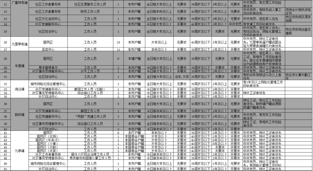 根据《关于进一步创新社会治理加强基层建设的意见》(沪委发〔2014〕14号)、《上海市社区工作者队伍管理办法》(沪委办发〔2019〕94号)等文件精神,为建设一支职业化、专业化的社区工作者队伍,按照公开、平等、竞争、择优的原则,松江区拟面向社会公开招聘社区工作者,有关事项公告如下: