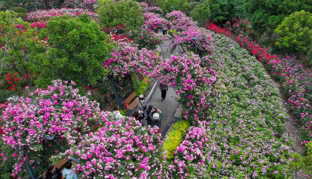 如果要拍最美的月季花海可以来月季公园,五一期间,这里有月季花展供市民、游客欣赏。