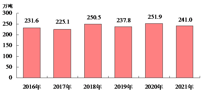 我们再看看下图所反映数据:从2016年到2021年这六年间洛阳粮食产量几乎就是在原地踏步。