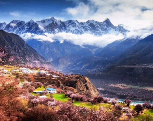 3、林芝撞一撞桃花运:寒意未尽却美如画,盛开的桃花依偎在高耸入云的雪峰之下,这一片壮丽的春天让人恍惚置身江南,来100次都不够。(三月)