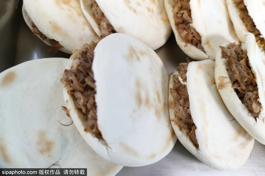 1. Roujiamo (Meat burger) (肉夹馍, ròu jiā mó)