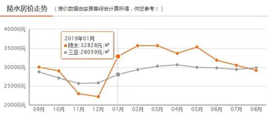 陵水县的房价,一直紧咬着三亚排名全省第二,在2019年甚至有好几个月反超三亚,把省会海口都甩出一截,同时也让陵水近几年一直霸占着全国县城房价第一的排名。