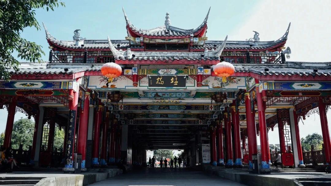 文昌街的牌坊高大巍峨,色彩鲜明,伫立在惠里。顺着文昌街直走,可以到达横跨柏条河的堰桥。