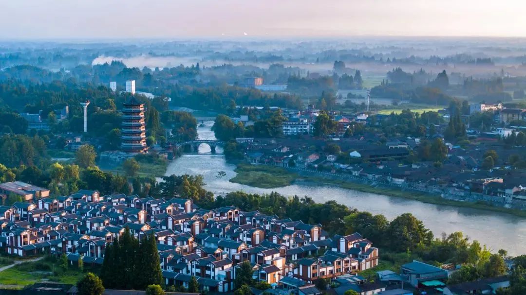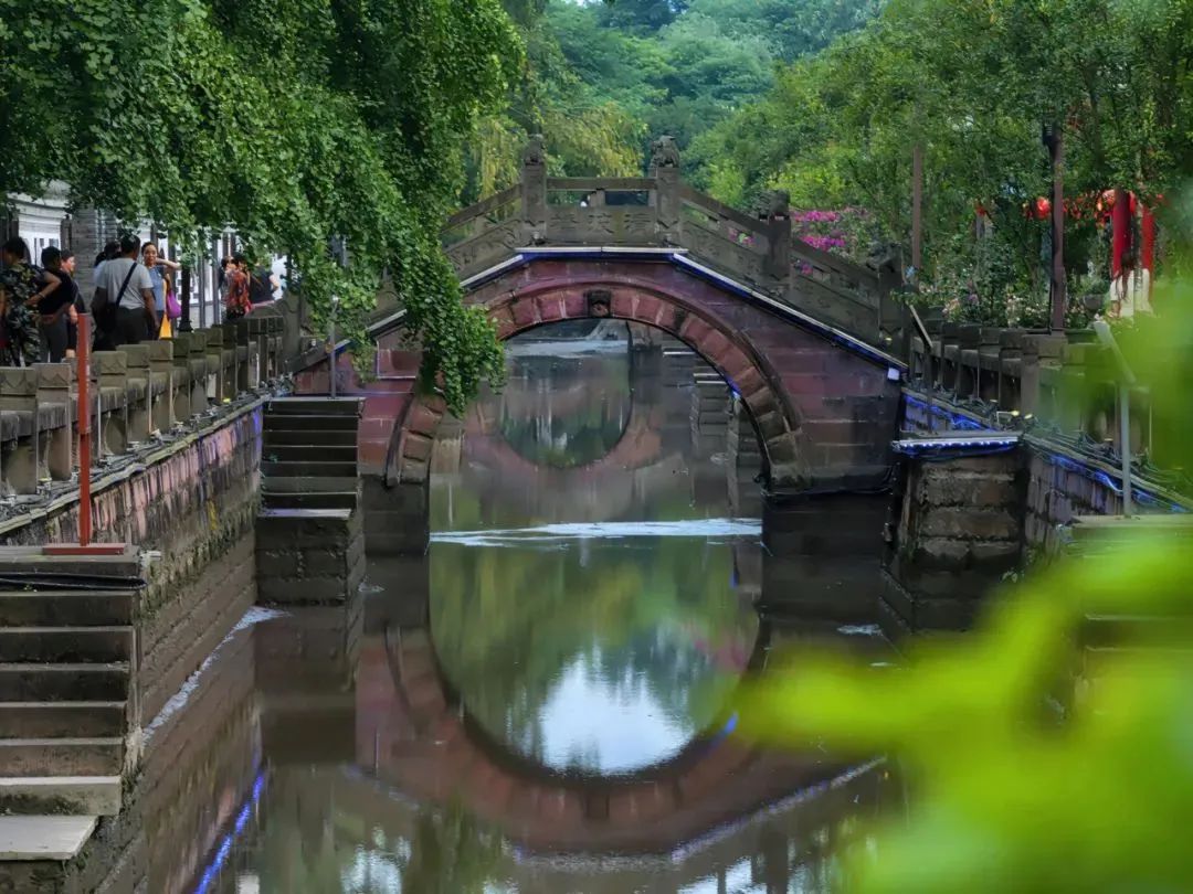 拱桥流水,长街小巷,在街子古镇,时光仿佛慢下了脚步。一艘艘游船荡开水面的涟漪,滑入了凤栖山连绵的林色里。