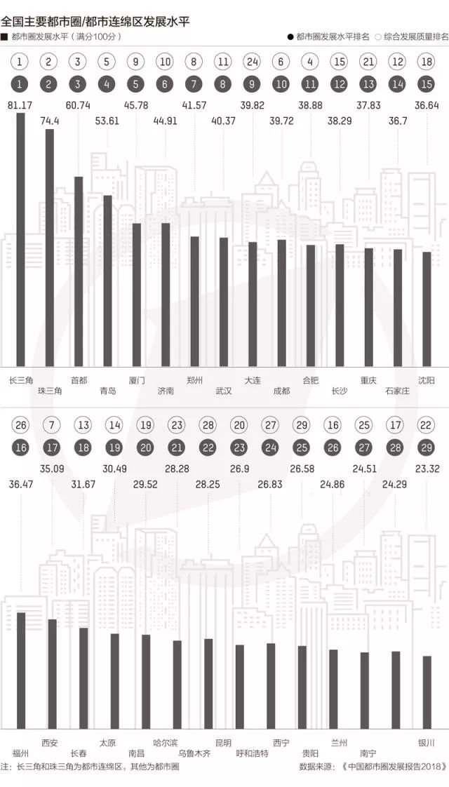 另一方面,城市发展越来越注重产业、资源、人口的聚集效应和规模效应,一座城市如果不能融入大的统一市场或拥有足够的资源腹地,在单项上表现再突出,都可能面临发展持续性的问题。