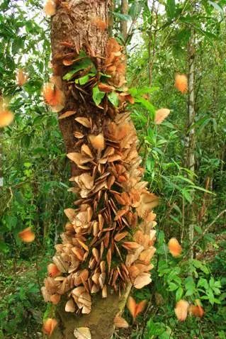 在五台山的森林内,你还可以看到多秒锣、野芭蕉、野生兰花、草果、薄竹、板根树木、藤本等多种国家级保护植物以及数不胜数不知名的树种和野生菌。山路很陡,抬头看天,山顶着天,但看不到天。你看到的也只是太阳洒落在地下的一抹光。