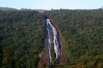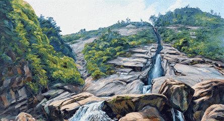 遭遇雷雨天,鸡蛋般大小的冰雹竟不能穿透上卷的水雾,反而助水为虐,还击于天。若是碧空万里的日子,上卷的雾水竞将太阳伸来的触须捉来,编织成一道七彩的虹,鲜鲜亮亮的挂在半空,非到太阳收工下山不消失。