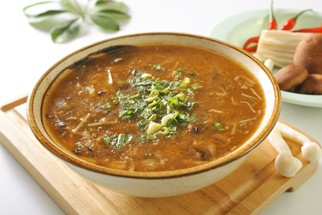 胡辣汤,又名糊辣汤,主要制作材料有胡辣汤料、胡椒、辣椒、熟羊(牛)肉、羊骨高汤、面筋、面粉、粉条等,由多种天然中草药按比例配制的汤料,再加入胡椒和辣椒,又用骨头汤做底料,其特点是汤味浓郁、汤色靓丽、汤汁黏稠,香辣可口,十分适合配合其它早点进餐,是中国北方早餐中常见的传统汤类名吃,也是河南知名小吃之一。胡辣汤在河南各地有不同的风味特点,有北舞渡胡辣汤、周口逍遥镇胡辣汤、信阳胡辣汤、开封胡辣汤、南阳胡辣汤、郑州荥阳胡辣汤、汝州胡辣汤等,尤其以周口逍遥镇胡辣汤比较出名,周口逍遥镇胡辣汤被评为“中国金牌...旅游小吃”。胡辣汤还被中国烹饪协会评选为河南省的“中国地域十大名小吃”。 【 详细>>】