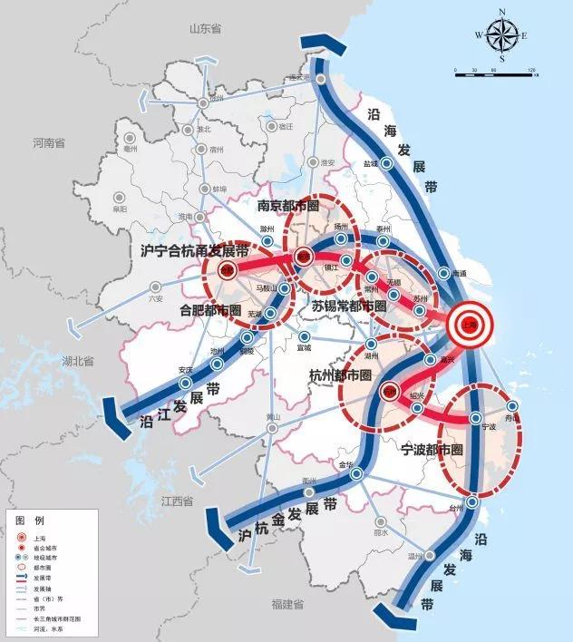 南京都市圈和合肥都市圈空间格局示意图 图片来源:《长三角城市群发展规划》(2016)