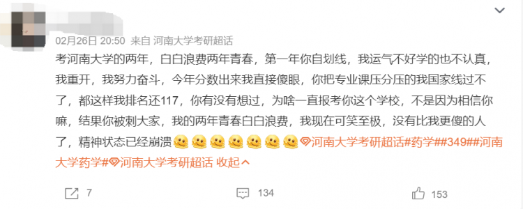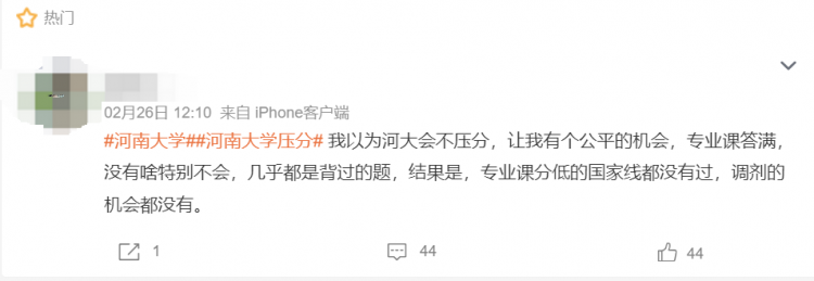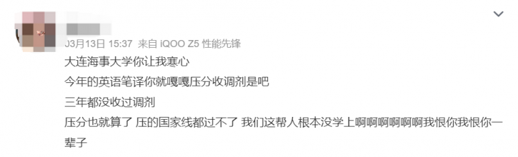今年河南大学也被众多考生吐槽,甚至是骂出了热搜条。一些考生认为,学校为了招收更优质的调剂生,故意压低部分考生的分数,从而留出名额给那些通过调剂进入的考生。