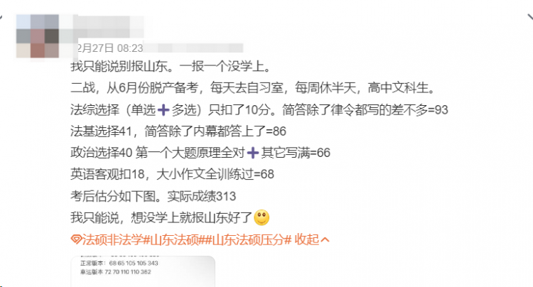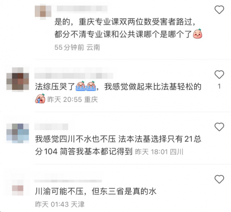 很多网友反馈:法综过百的都很少。今年公共课似乎没有和去年一样压分,但换成了专业课(法硕),只能说太难了~