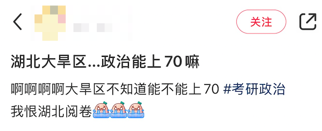 同时,还有同学表示:湖北成了名副其实的旱区,陕西政治存在压分的现象。