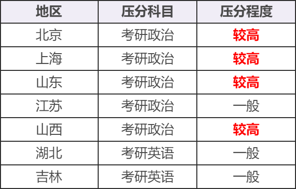 根据网上关于公共课的阅卷反馈,小编汇总了24考研部分地区的压分程度,同学们可以做一下参考: