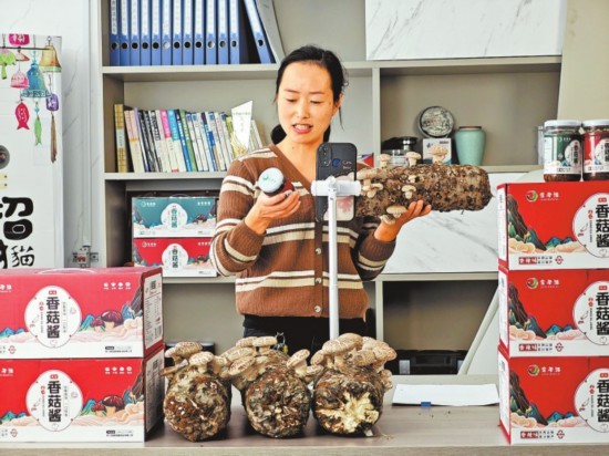 栾川通过招才引智“绿色通道”为各类人才搭建创新创业舞台。图为栾川返乡创业青年通过网络直播推销当地特产。 侯豫炯 摄