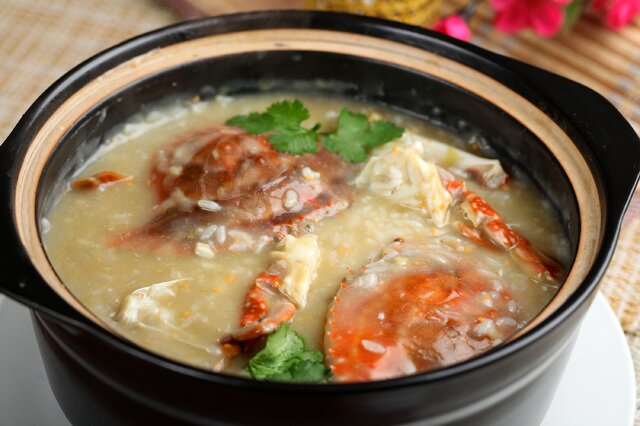 水蟹粥是澳门特色小吃之一,蟹全是用本地蟹,因澳门的蟹生长于咸淡水交界,蟹味鲜甜,肉质丰美爽口。水蟹粥是各取水蟹、膏蟹、肉蟹三种蟹的精华,再配上特别制的蚝粥,丰富了它的味道。粥不稠不稀,丰腴的蟹黄、鲜美的蟹肉,充满蟹香。澳门比较有名的水蟹粥是位于氹仔的诚昌饭店,蟹黄与粥水融于一体,泛起一层金黄,诱人夺目。 【 详细>>】