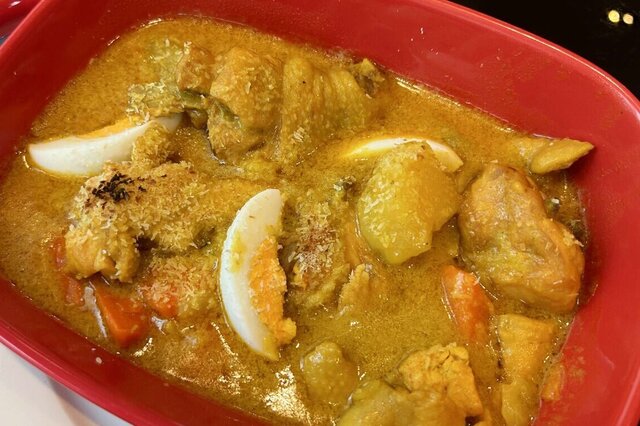 葡国鸡是澳门的代表菜之一,正是“澳门土生葡国菜”里的经典,橄榄油和黑水榄是属于葡萄牙的,咖喱是印度的味道,椰浆有泰国的风情,鸡又是粤菜的标志。一盘菜融汇中西,成为澳门特色菜。烹饪方法和配料都是葡式的,将鸡肉、土豆、洋葱、鸡蛋、西红柿配以咖喱粉烩烧而成,材料用的都是澳门本地的,而做法和配料又保留了葡国饮食文化特色。其特点为香味浓郁、鸡肉鲜嫩可口。它是全套葡国菜的主菜,一般与佐餐酒配合则风味更佳。 【 详细>>】