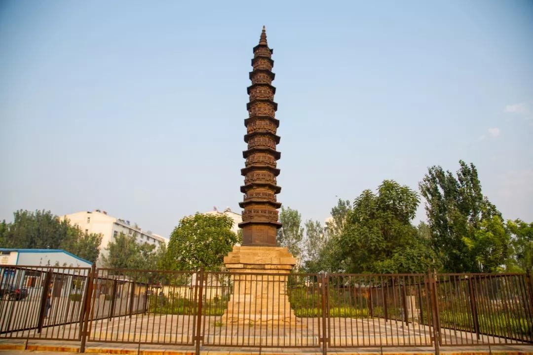 聊城铁塔,聊城最古老的建筑,为中国三大铁塔之一,始建于宋金时期,石座铁身的铁塔,通高15.5米,塔身铸造工艺古朴奇巧,石座浮雕精美绝伦,各类图案栩栩如生,不得不感叹古代工匠技艺的精湛。