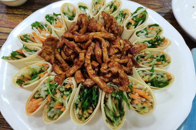三不粘又名桂花蛋,是用鸡蛋、淀粉、白糖加水搅匀炒制成的。它不仅色彩金黄,味道甘美,更令人称奇的是它不粘盘子、不粘筷子、不粘牙齿,这也正是它为什么叫“三不粘”的缘由。相传,清朝乾隆年间,乾隆皇帝到江南巡察民情,路过安阳,提出来要品尝安阳的风味美食,乾隆吃了这道菜肴之后,见这道菜肴不粘盘子、不粘筷子、不粘牙齿,就当即下了圣旨,让县令把此菜肴的制作方法给了皇宫里的御膳房,成为北京宫廷御用菜,后来由宫廷传入北京民间,成为北京一道名菜。“三不粘”这道菜肴做得最好的大概要数北京的同和居饭店了,他们烹制的“三...不粘”色质纯美,香甜宜人,入选由中国烹饪协会主办的“世界发布‘中国菜’活动暨全国省籍地域经典名菜”中北京榜名单,被评为“中国菜”北京十大经典名菜。 【 详细>>】