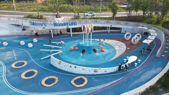 公园的开阔地带为孩子们提供了一个充满乐趣和挑战的游乐区域。孩子们在这里攀爬、滑梯、荡秋千,尽情释放着他们的天性。他们的笑声、欢呼声在公园里回荡,为这片湿地增添了童真和欢乐。