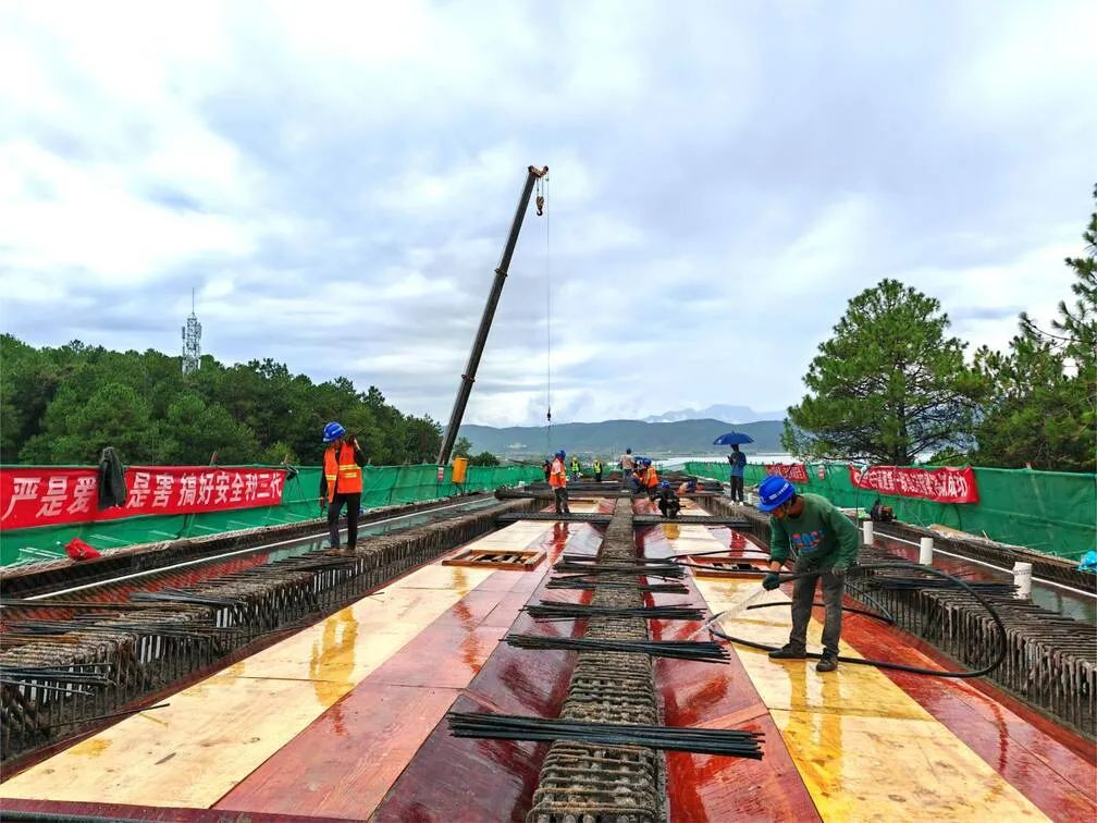 在项目推进过程中,为确保首联现浇箱梁浇筑高质量完成,参建各方科学规划、精心统筹,提前编制、论证、审批专项施工方案,切实做好安全、技术交底工作,对照方案对支架搭设、钢筋绑扎、模板安装、混凝土浇筑及养护等进行全过程精细化管控,全方位保障了现浇箱梁施工安全质量可控。(陈秋安)