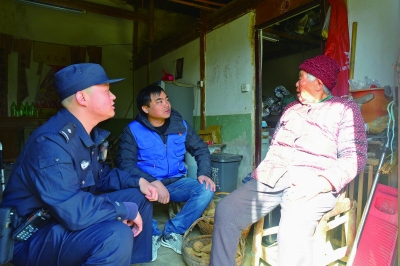 12月4日9时,晶桥镇派出所社区民警胡智涛在派出所开完晨会后,立即来到工作地点芝山村警务室,与芝山村网格员王冠一起进村走访。在八旬独居老人陈树英的家中,胡智涛和王冠详细询问老人的饮食起居与身体健康状况,并叮嘱老人用电用气要注意安全。