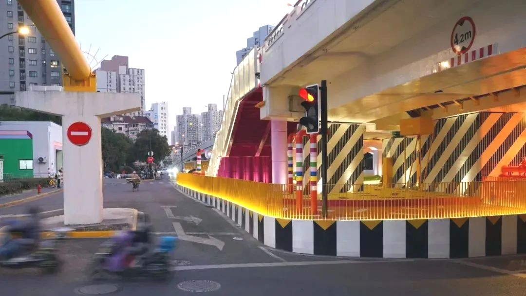 在江苏北路万航渡路交叉口,有两处新晋网红打卡点。其中“苏河超级管”自落成以来便成为极具辨识度的城市打卡地,受到了市民和游客的喜爱,它是长宁沿苏州河桥下休闲文化带的第一个提升节点,也是长宁、静安、普陀三区交界处的门户。