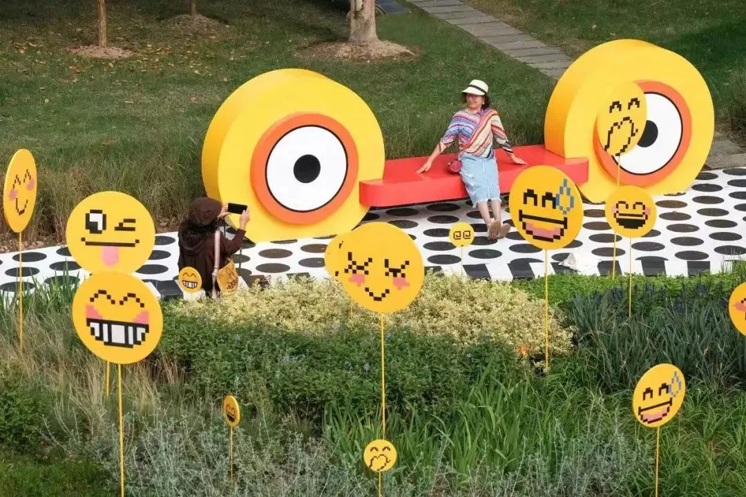 紧邻“苏河超级管”的是近期全新开放的“表情包”口袋公园。公园在风格上继承了其鲜明的艺术张力,还融入了更多的情感表达和趣味互动,园内的各种艺术装置吸引了众多市民和游客前来留影纪念,分享这份独特的体验。