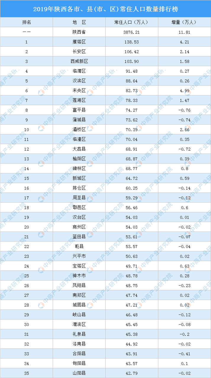 与上年同期相比,6个市、县(市、区)常住人口增量超1万人,其中,未央区常住人口增量最大达4.99万人,雁塔区紧随其后,常住人口增量4.21万人。值得注意的是,52个市、县(市、区)常住人口负增长。