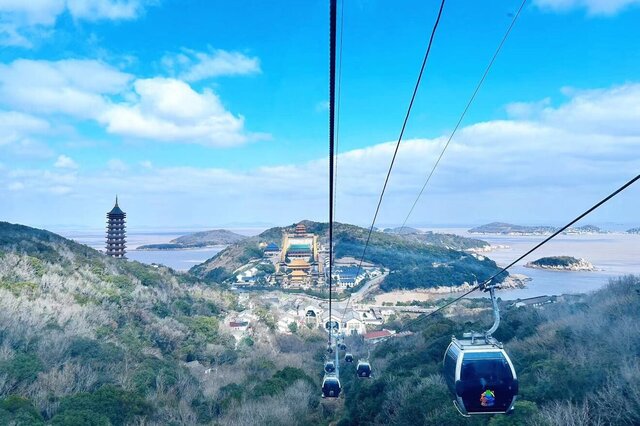 普陀山地形呈菱形状,面积12.52平方千米,是舟山群岛1390个岛屿中的一个小岛,形似苍龙卧海,素有“海天佛国”、“南海圣境”之称,相传这里是观世音菩萨教化众生的道场。这里四面环海、风光旖旎、古樟遍野,被誉为“第一人间清净地”。岛上风光旖旎,洞幽岩奇,古刹琳宫,云雾缭绕。山石林木、寺塔崖刻、梵音涛声,皆充满佛国神秘色彩。 【 详细>>】